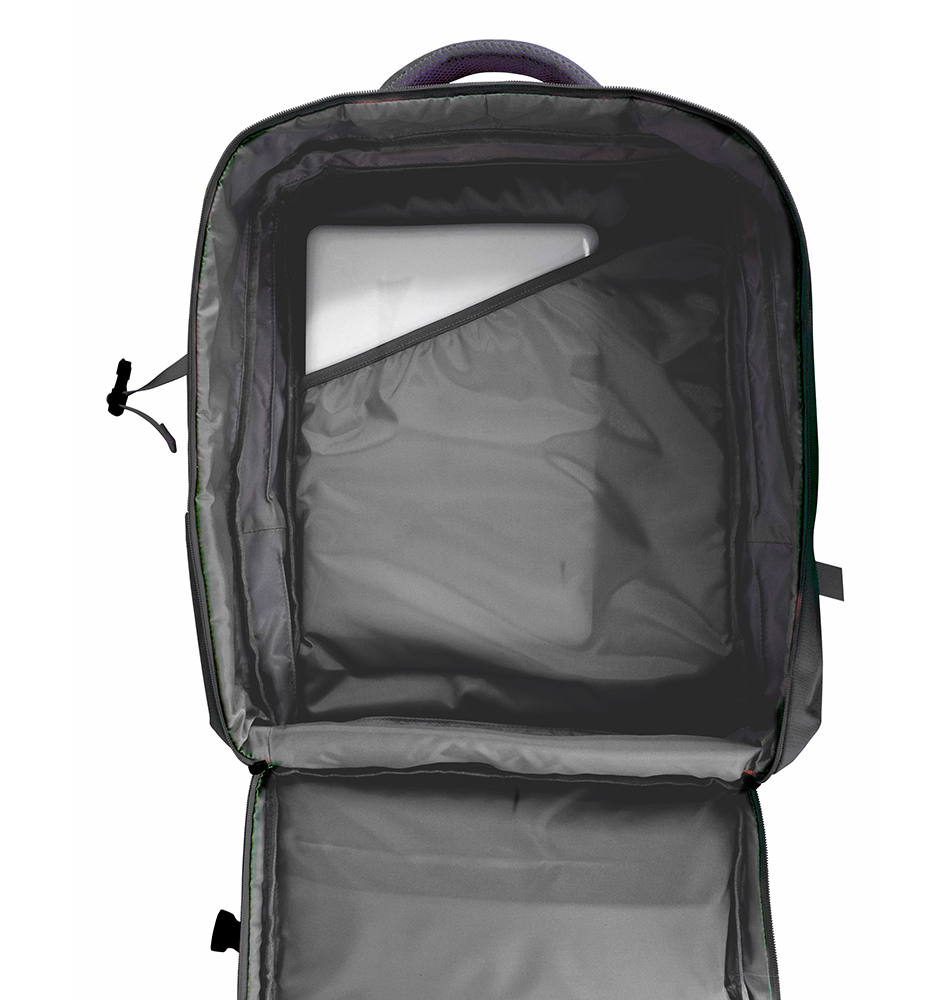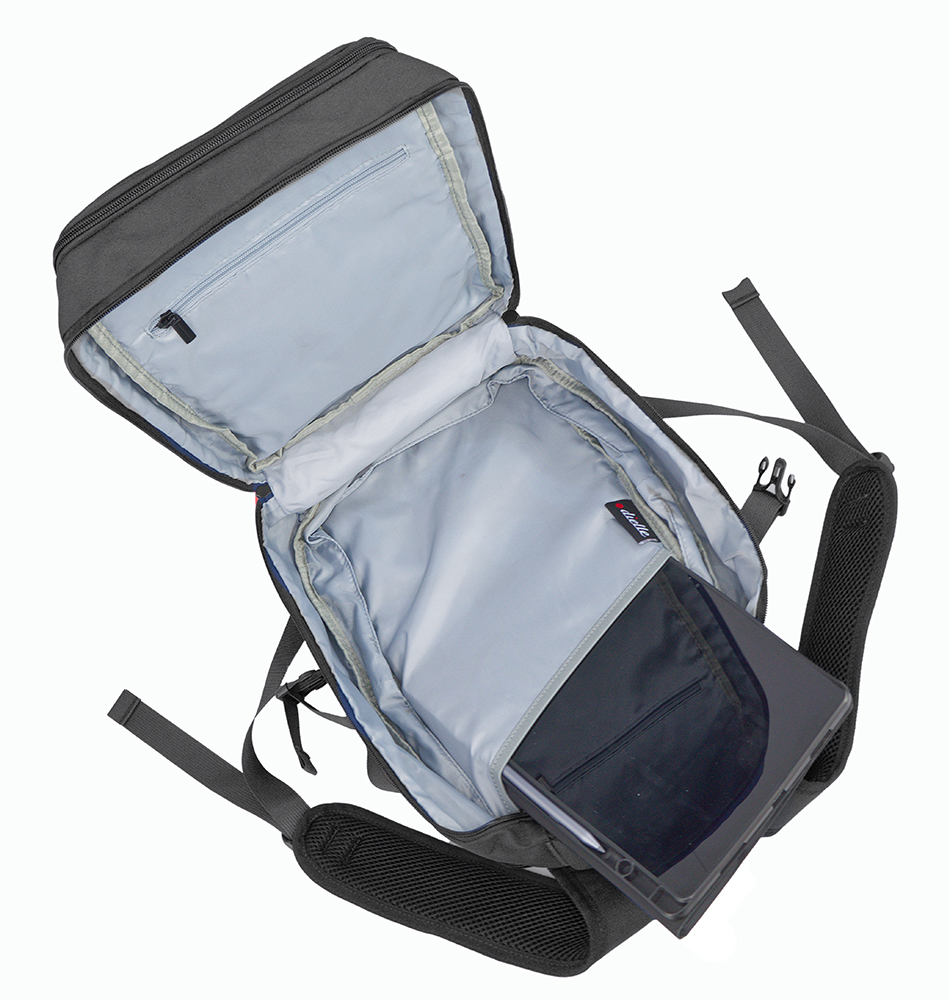 Σακίδιο ταξιδιού με μοντέρνο και λειτουργικό σχεδιασμό από τεχνικό ύφασμα. Με καθαρές γραμμές, διαθέτει ευρύχωρες μπροστινές τσέπες. Το έντονο κόκκινο φερμουάρ προσθέτει μια ξεχωριστή, σπορ πινελιά.