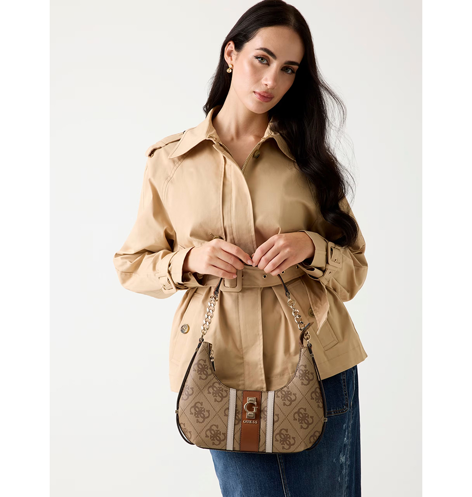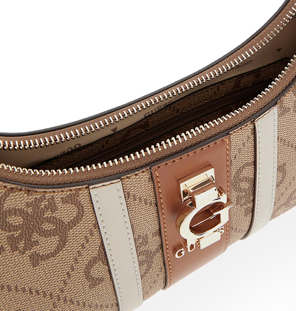 Γυναικεία τσάντα ώμου Guess Erenia Top Zip Shoulder Bag HWSO7838180-LTL Μπεζ. Κομψή και ευέλικτη, η Guess Erenia mini shoulder bag συνδυάζει πολυτέλεια και πρακτικότητα. Με το χαρακτηριστικό μεταλλικό G λογότυπο και τις κομψές διχρωμίες, αναβαθμίζει κάθε εμφάνιση — από καθημερινά look έως πιο προσεγμένες βραδινές επιλογές.