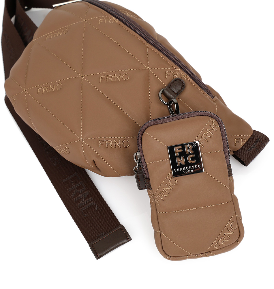 Γυναικείο Τσαντάκι μέσης  - μπανάνα FRNC Water Repellent Satin 4121 Καφέ. Γυναικείο τσαντάκι μέσης με αποσπώμενο κρεμαστό μικρό τσαντάκι από την νέα συλλογή της FRNC σε υπέροχο μέγεθος που την καθιστά ιδανική για καθημερινή χρήση, το εκκεντρικό σημείο της το λογότυπο μπροστά