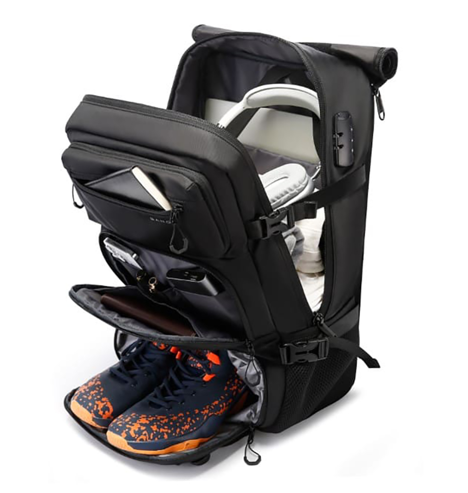 1 κύρια τσέπη με φερμουάρ, 3 τσέπες με φερμουάρ μπροστά, 1 τσέπη στο πλάι με πλέγμα, αποσπώμενο τσαντάκι μέσης, ξεχωριστή θήκη για παπούτσια , χειρολαβή στο πλαι μπορεί να παρέχει χωριστό χώρο για υπολογιστή, iPad, αρχεία A4, πορτοφόλι, ρούχα, τράπεζα τροφοδοσίας και πολλά άλλα τα αντικείμενα σας.