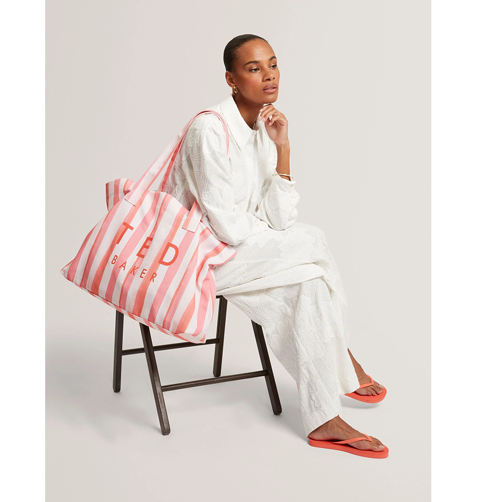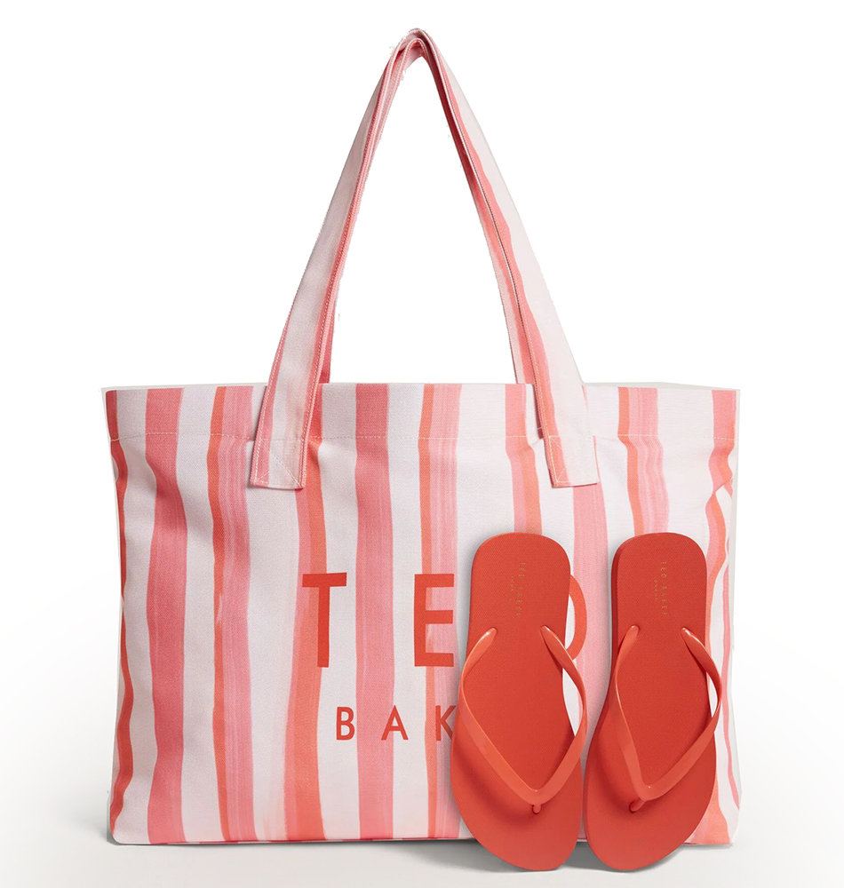 Γυναικεία τσάντα θαλάσσης TED BAKER Octavy Striped Printed Beach Tote Bag & Flip Flops 284245-PINK Ροζ. Νέα συλλογή Spring-Summer 2026.