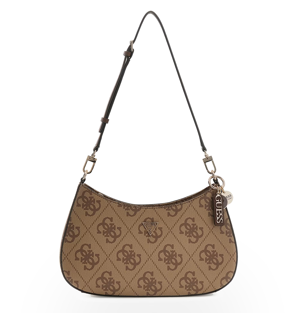 Γυναικεία τσάντα ώμου GUESS Noelle Top Zip HWSO9672180-LGW Καφέ. Αναβαθμίστε το στυλ σας με αυτήν την τσάντα από την νέα συλλογή, η οποία μπορεί να σας εξυπηρετήσει σε όλες τις ώρες.