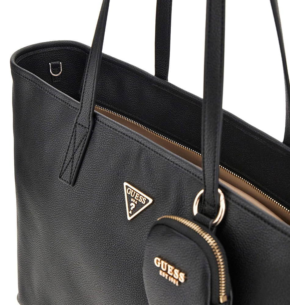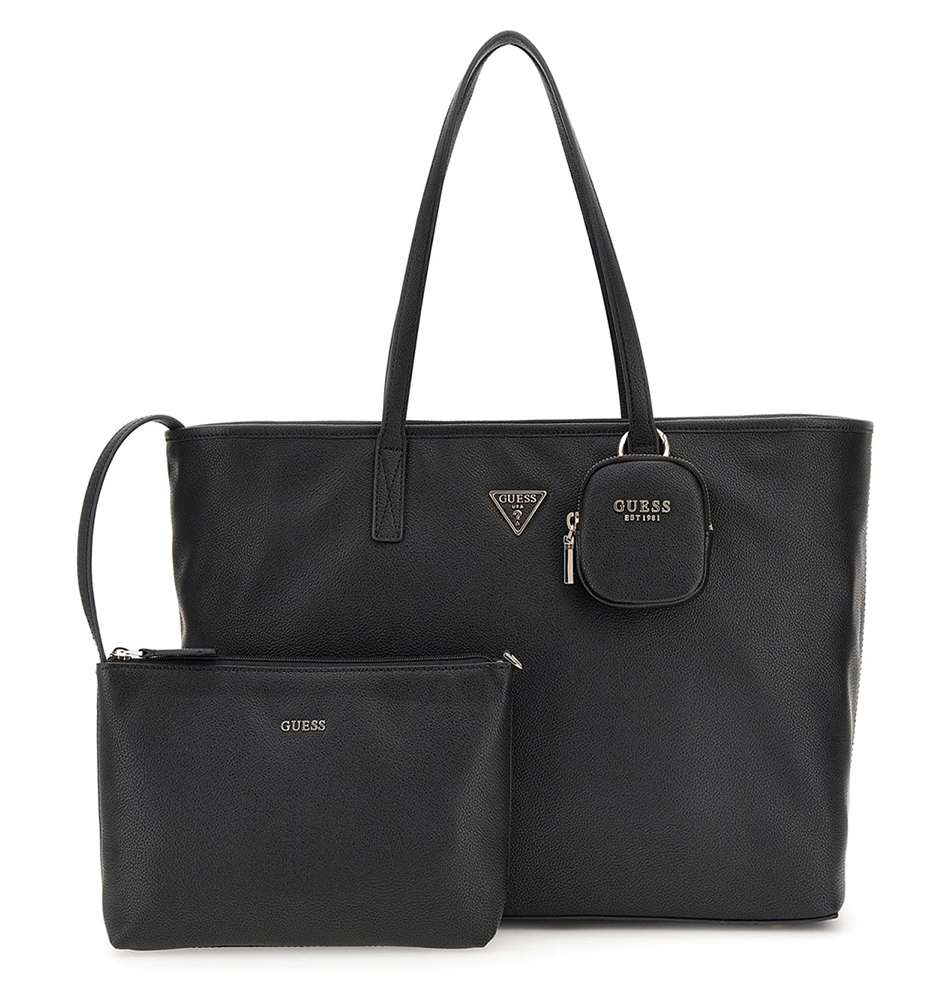 Γυναικεία τσάντα ώμου Guess Power Play Large Tech Tote HWBG7124240-BLA Μαύρο. Η Guess Power Play σετ τσάντας ώμου είναι η ιδανική επιλογή για όσες θέλουν πρακτικότητα και κομψότητα μαζί. Η μεγάλη τσάντα συνοδεύεται από ένα εσωτερικό πορτοφολάκι/νεσεσέρ που μπορεί να χρησιμοποιηθεί και ξεχωριστά, ενώ οι χρυσές λεπτομέρειες και το χαρακτηριστικό λογότυπο GUESS ολοκληρώνουν ένα διαχρονικά στιλάτο αποτέλεσμα.