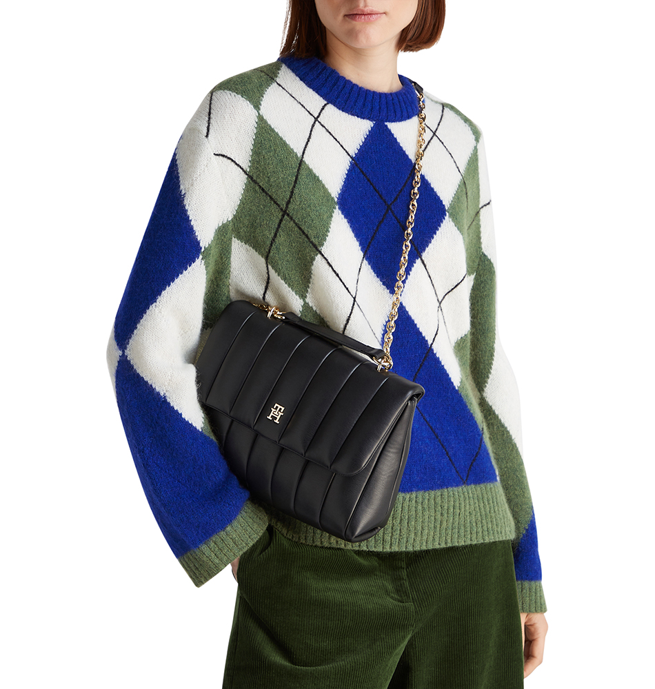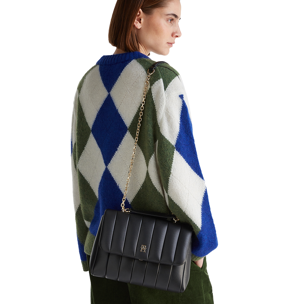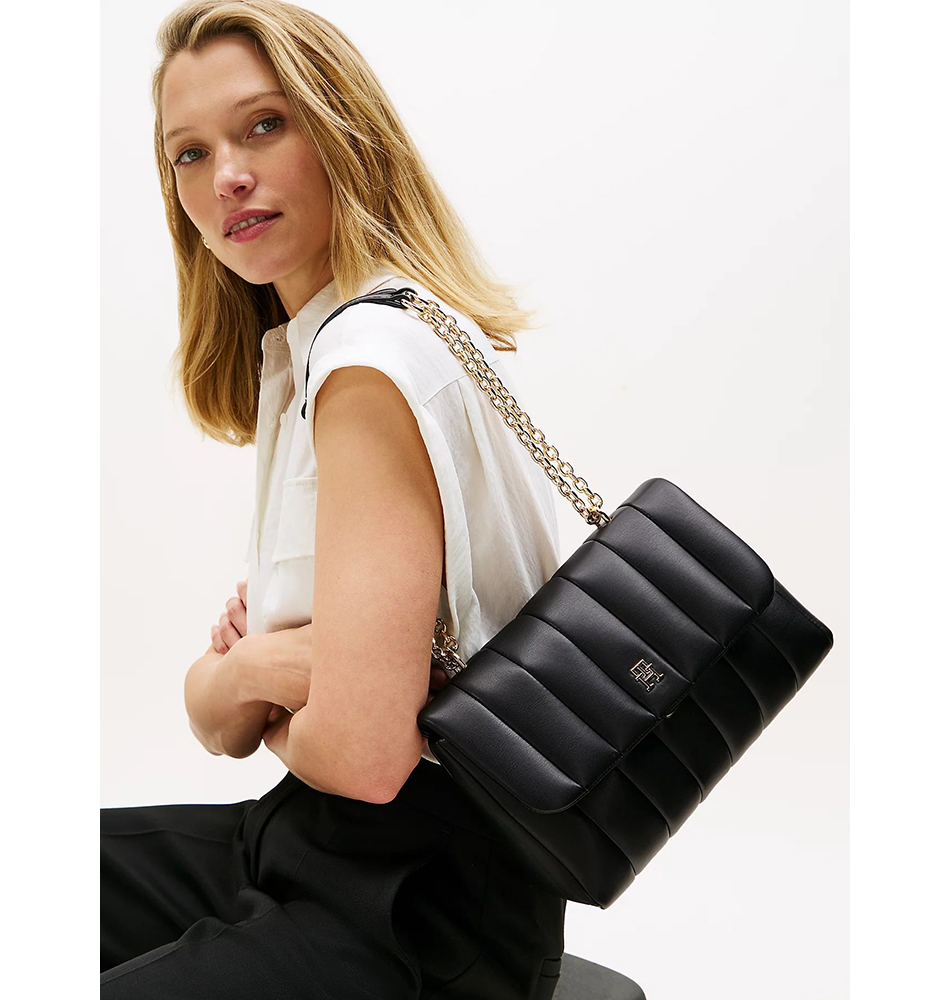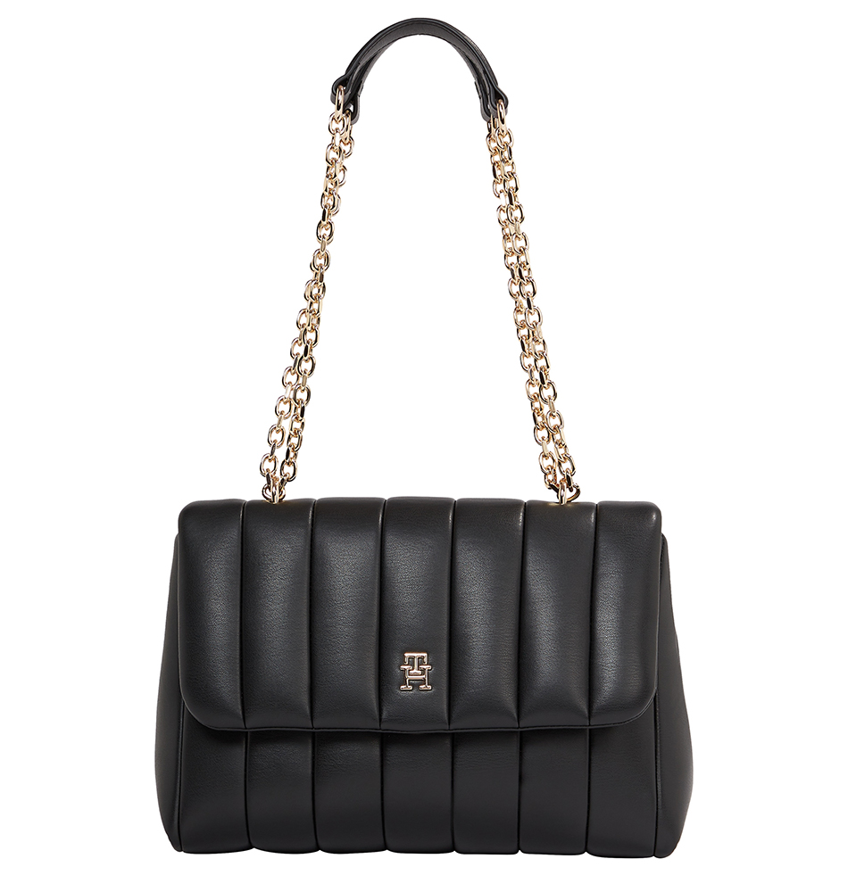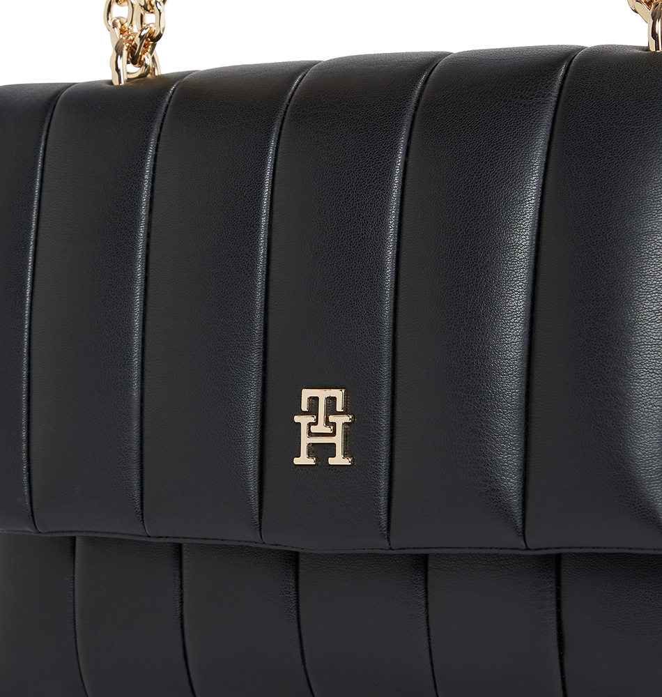 Γυναικεία τσάντα χιαστί TOMMY HILFIGER TH Grace Medium Crossover Chain Strap Bag AW0AW17669-BDS Μαύρο. Η τσάντα διαθέτει ένα καπιτονέ σχέδιο που αποπνέει σύγχρονη κομψότητα, ενώ το ρυθμιζόμενο διπλό αλυσιδωτό λουράκι ώμου προσφέρει μεγαλύτερη ευελιξία.