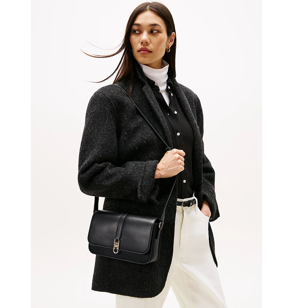 Γυναικεία τσάντα χιαστί TOMMY HILFIGER TH Libre Monogram Flap Crossover Bag AW0AW17723-BDS Μαύρο. Συνδυάζοντας μια κομψή, λεία υφή με μεταλλικά στοιχεία εμπνευσμένα από την κλασική αισθητική του brand, αυτή η τσάντα χιαστί αποτελεί ένα εκλεπτυσμένο σχέδιο που ταιριάζει με κάθε εμφάνιση.