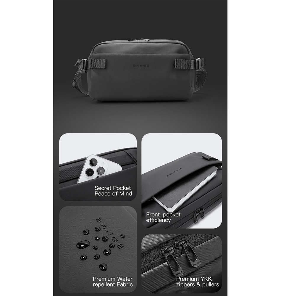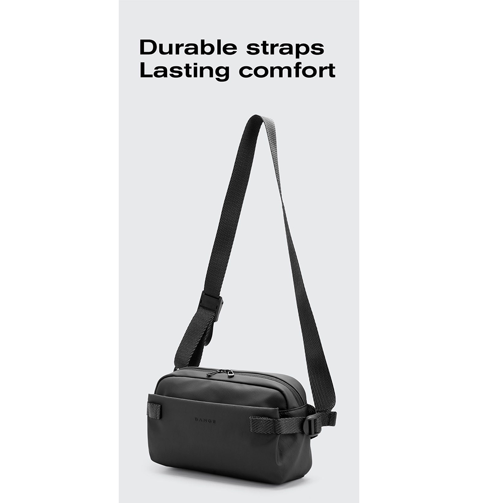 Η BANGE σχεδίασε αυτή την τσάντα μέσης χιαστί με πολυεστερικό ύφασμα υψηλής πυκνότητας. Το εξωτερικό υλικό είναι αδιάβροχο, ανθεκτικό στις γρατζουνιές και στις δύσκολες καιρικές συνθήκες. Το πίσω μέρος αναπνέει, απομακρύνει τη θερμότητα και δεν προκαλεί υπερθέρμανση, ακόμη και μετά από πολύωρη χρήση.