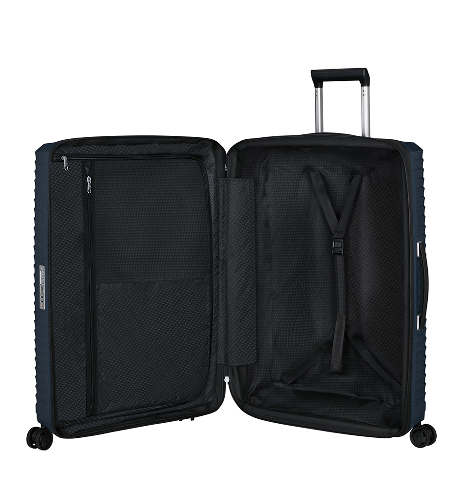 Με τη βαλίτσα Upscape επιλέγετε την άνεση. Απολαύστε ξέγνοιαστα ταξίδια χάρη στο πολύ μικρό βάρος της, τους τροχούς ανάρτησης που απορροφούν τους κραδασμούς, καθώς και την αφαιρούμενη και πλενόμενη εσωτερική της επένδυση. Η πρακτική δυνατότητα επέκτασης και η εντυπωσιακή ασημένια επένδυση της θα προσθέσουν ευκολία και ποιότητα στα ταξίδια σας!